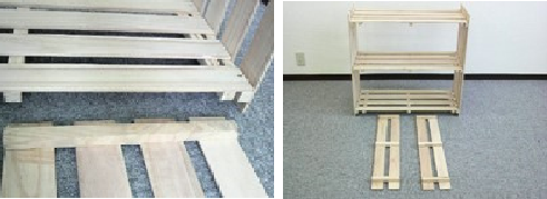 スノコでできているので、木の雰囲気が優しく可愛らしい仕上がりになりました。通気性が良いので玄関に置く靴棚として使ったり、防水材を塗って小さな植木を置くスペースにしてみるのもおすすめです。形は好きだけれど色が好みじゃないという方は、最近は100均ショップでも色とりどりの塗料がありますので、好きな色に塗ってみるのも楽しいですよ!